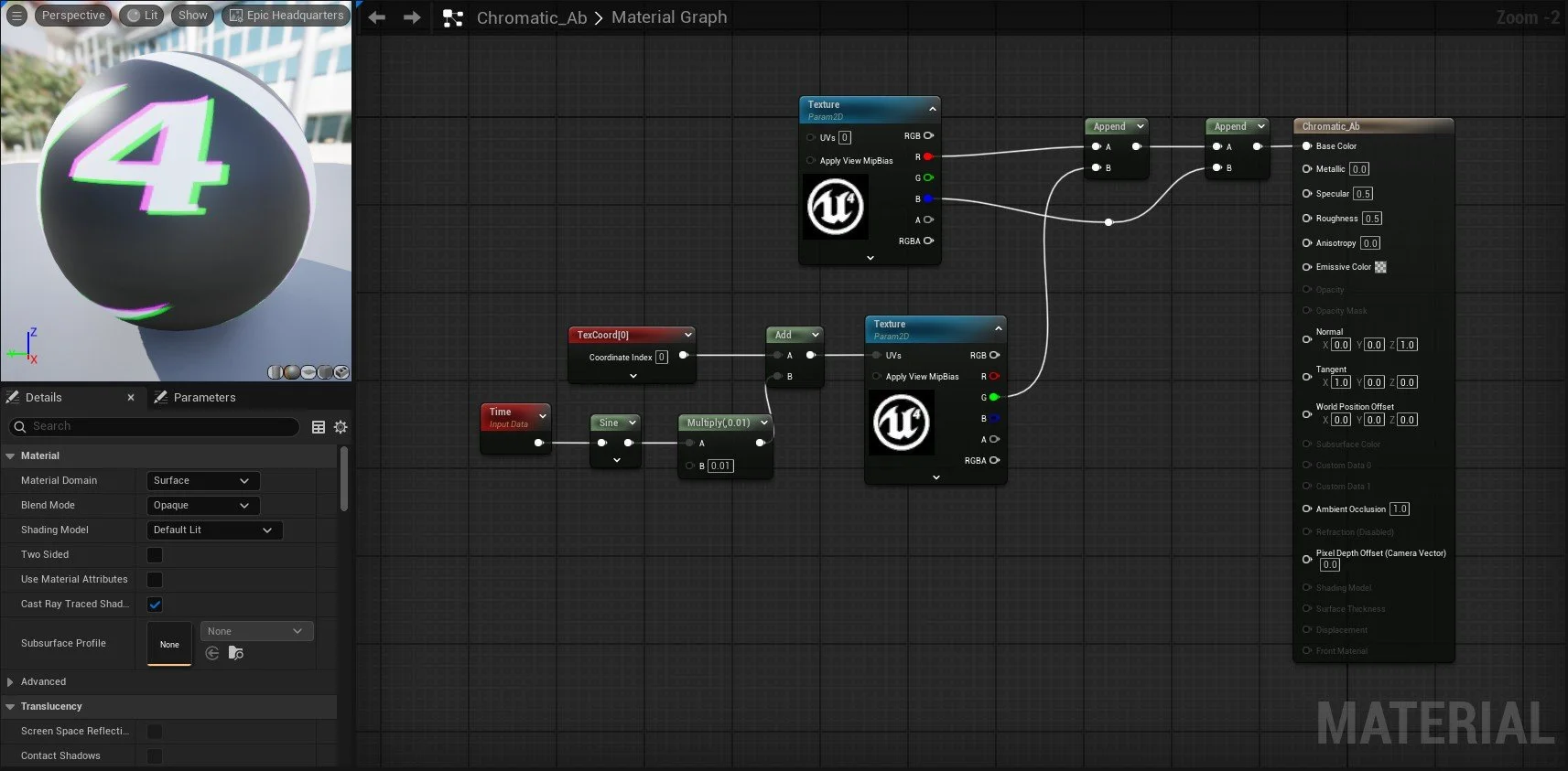 You can change the Texture Sample image by selecting the node and changing the texture associated with it alongside the amount of animation that takes place by adjusting the value on the Multiply Node (B).