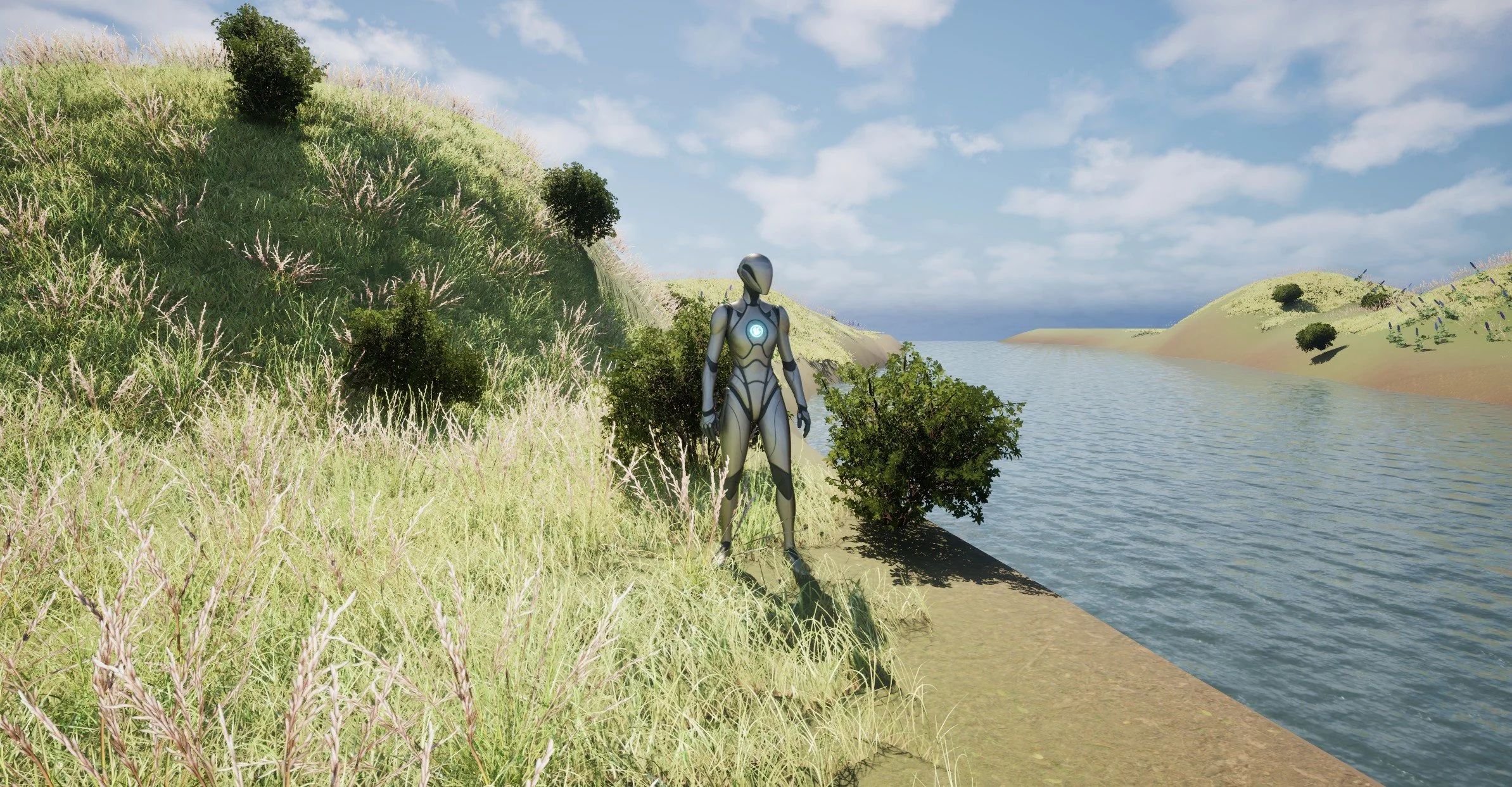 The Water Plugin Edit > Plugins does have a River Spline example that can affect the landscape/terrain however it is experimental, impacts performance and can be tricky to get right. We will explore this in a dedicated section on water and Unreal within Simulations.